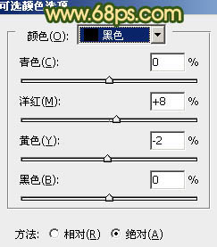 2、创建可选颜色调整图层,对黄、绿、白、黑进行调整,参数设置如图5 - 8,效果如图9。这一步增加图片的橙黄色。