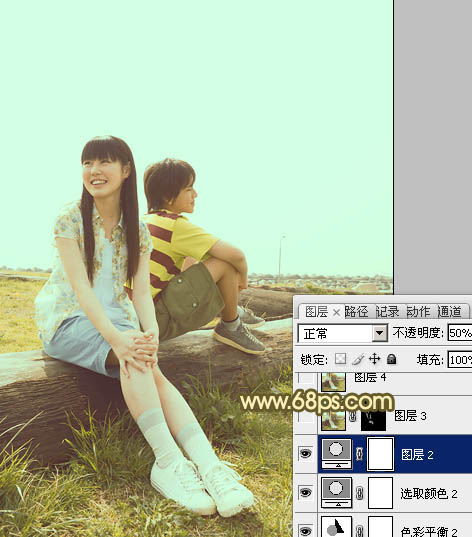 7、按Ctrl + J 把当前可选颜色调整图层复制一层,加强高光颜色,确定后把图层不透明度改为:50%,效果如下图。