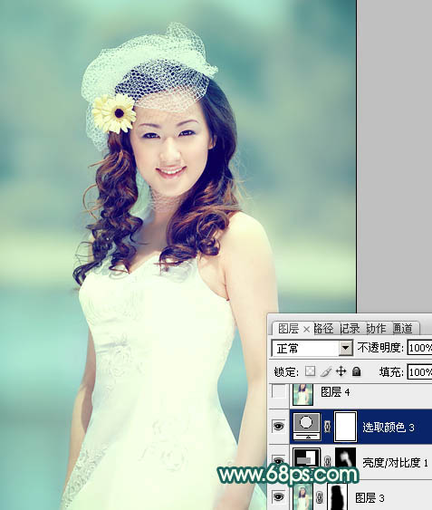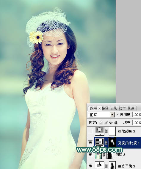 Photoshop调出河边人物图片甜美的黄青色(8)