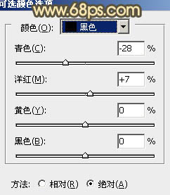 1、打开原图素材,创建可选颜色调整图层,对红、黄、洋红、白、中性、黑进行调整,参数设置如图1 - 6,确定后用黑色画笔把人物部分擦出来,效果如图7。这一步把背景的基色橙红色调出来。