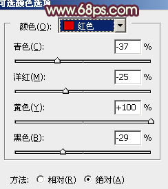 2、创建可选颜色调整图层,对红、中性、黑进行调整,参数设置如图2 - 5,效果如图6。这一步增加图片的红色。