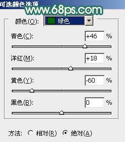 3、创建可选颜色调整图层,对黄、绿、青、黑进行调整,参数设置如图6 - 9,效果如图10。这一步增加背景部分的青色,同时把人物的肤色调红润。