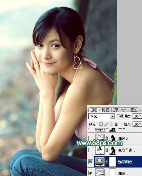 Photoshop调出写真人物图片柔美的青红色(3)