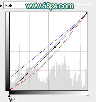 5、调成当前蒙版选区,创建曲线调整图层,对RGB、红、蓝进行调整,参数设置如图15,效果如图16。这一步增加背景部分的青色。