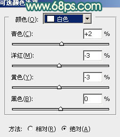 7、调出当前图层蒙版选区,按Ctrl + Shift + I 反选得到人物部分的选区,然后创建可选颜色调整图层,对红、黄、白进行调整,参数设置如图18 - 20,效果如图21。这一步增加人物肤色的红色。