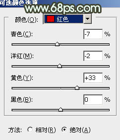 2、创建可选颜色调整图层,对红、青、白、黑进行调整,参数设置如图2 - 5,效果如图6。这一步把青色转为绿色,红色转为橙黄色。