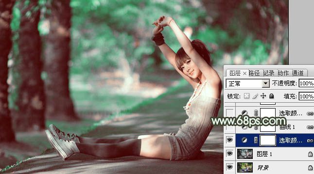 Photoshop打造甜美的暗绿色外景人物图片(2)