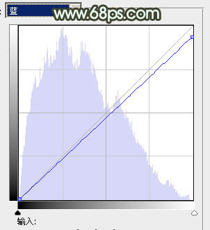 3、创建曲线调整图层,对蓝色进行调整,参数设置如图7,效果如图8。这一步增加高光部分的黄色。