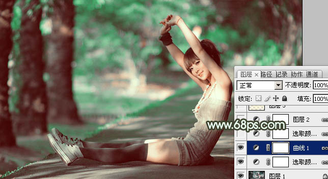 Photoshop打造甜美的暗绿色外景人物图片(3)