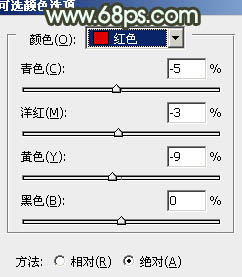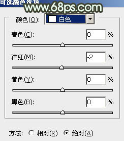 4、创建可选颜色调整图层,对红、黄、绿、白进行调整,参数盒子如图9 - 12,效果如图13。这一步把绿色转为黄绿色。