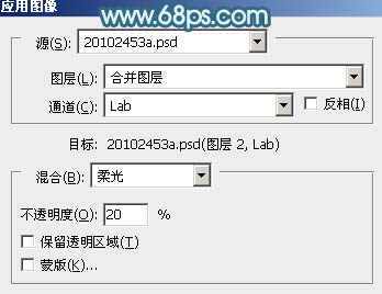 5、新建一个图层,盖印图层。执行:图像 > 应用图像,参数设置如图16,确定后选择菜单:图像 > 模式 > RGB颜色,效果如图17。