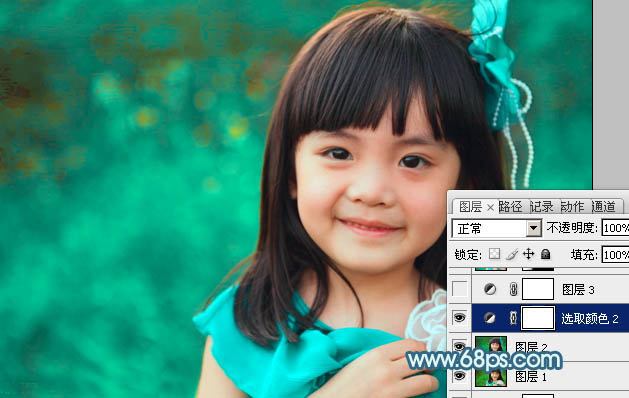 Photoshop给小女孩图片增加甜美的青红色(5)
