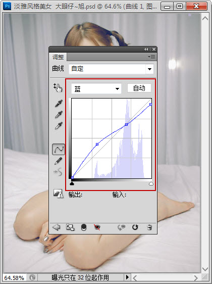 5、创建曲线调整图层,对绿色和蓝色进行调整,参数及效果如下图。