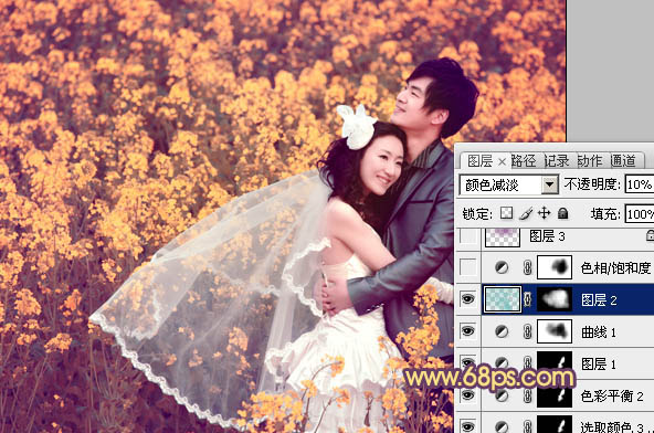 Photoshop打造漂亮的橙紫色油菜花婚片(6)