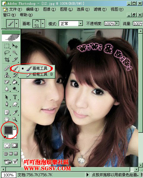 3、然后用调节好的眉毛笔刷直接在眉毛部位点一下OK。