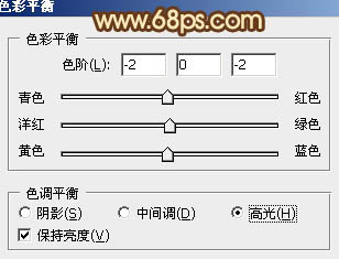 5、创建色彩平衡调整图层,对阴影,高光进行调整,参数设置如图11,12,效果如图13。这一步微调高光部分的颜色。