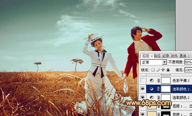 10、按Ctrl + J 把当前可选颜色调整图层复制一层,不透明度改为:50%,效果如下图。