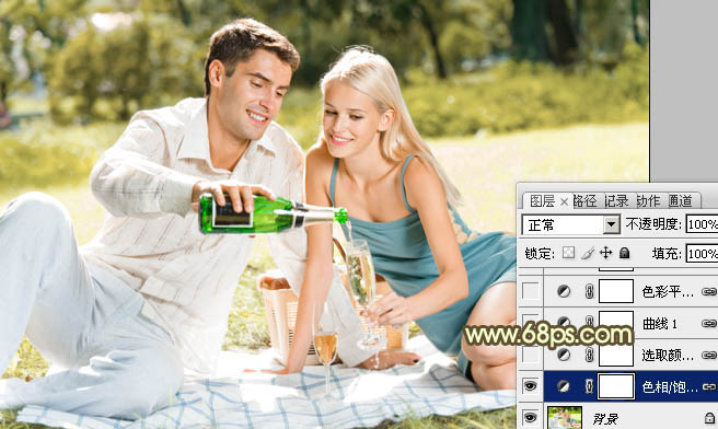 Photoshop调出草地情侣图片复古的淡黄色(2)