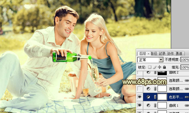 Photoshop调出草地情侣图片复古的淡黄色(4)