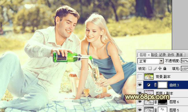 Photoshop调出草地情侣图片复古的淡黄色(8)