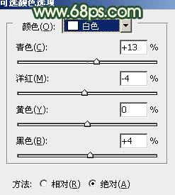 1、打开原图素材,创建可选颜色调整图层,对白,黑进行调整,参数设置如图1,2,效果如图3。这一步增加高光部分的青绿色。