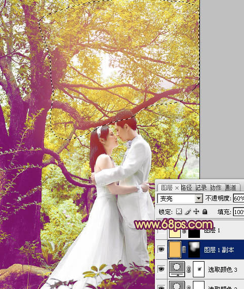 Photoshop为树林婚片增加柔美的黄紫色(4)
