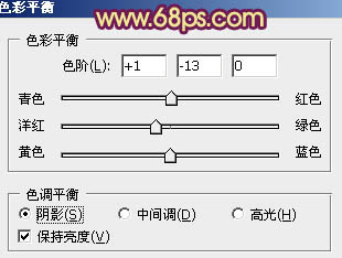 7、创建色彩平衡调整图层,对阴影,高光进行调整,参数设置如图15,16,确定后把图层不透明度改为:50%,效果如图17。这一步增加高光部分的青色。