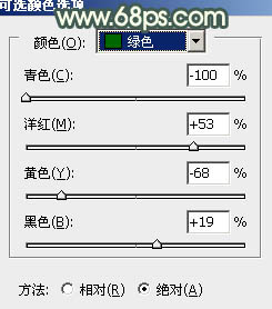 1、打开原图素材,创建可选颜色调整图层,对绿,中性色进行调整,参数设置如图1,2,效果如图3。这一步把主色转为黄褐色。