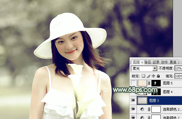 Photoshop打造淡淡的古典黄灰色外景美女图片(5)
