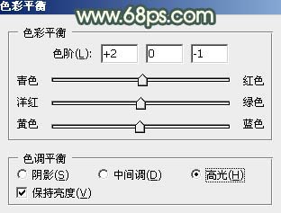 8、创建色彩平衡调整图层,对高光进行调整,参数设置如图14,效果如图15。这一步增加图片的灰度。