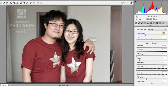 1、将原始图片拖入PhotoShop视窗,图片自动在Camera Raw中打开,按照正常的视觉要求进行简单的画面裁剪和参数调节,本张照片是尼康D50+50mm f1.8镜头拍摄的,详细参数见右上角EXIF信息,此照为导入PS后的初始默认状态。