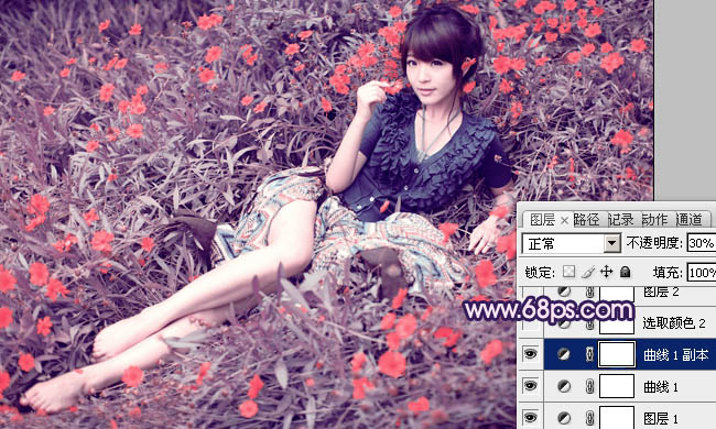 4、按Ctrl + J 把当前曲线调整图层复制一层,不透明度改为:30%,效果如下图。