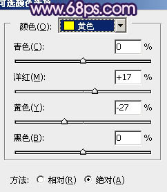 5、再创建可选颜色调整图层,对红、黄、洋红、白、黑进行调整,参数设置如图11 - 15,效果如图16。这一步微调背景部分的红色。