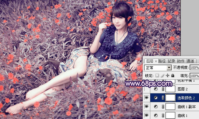 Photoshop调出草地人物图片柔和的紫红色(4)