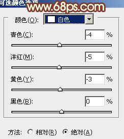 3、创建可选颜色调整图层,对黄,白进行调整,参数设置如图11,12,效果如图13。这一步增加图片的淡黄色。