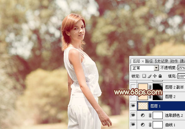 Photoshop调出外景图片漂亮的淡调红紫色(4)