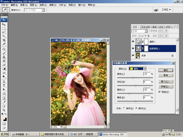 Photoshop两步打造柔美的暖色花景人物图片(2)