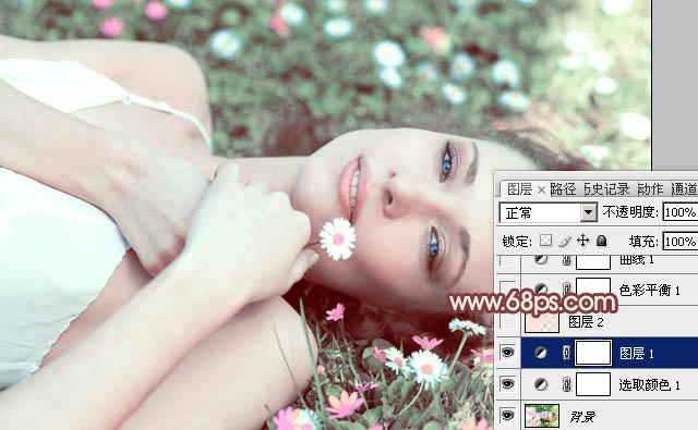 Photoshop调出草地美女图片流行的欧美粉褐色(3)