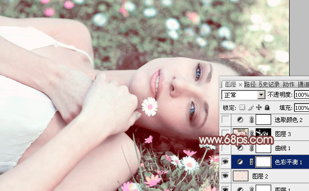 Photoshop调出草地美女图片流行的欧美粉褐色(4)