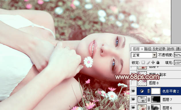 Photoshop调出草地美女图片流行的欧美粉褐色(8)