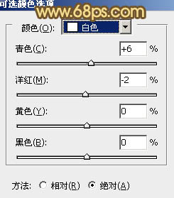 8、创建可选颜色调整图层,对红、黄、白进行微调,参数设置如图20 - 22,效果如图23。这一步增加图片的粉色,让人物看上去更甜美。