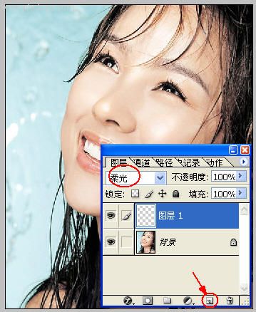 2,建立一个新图层,模式改为柔光: