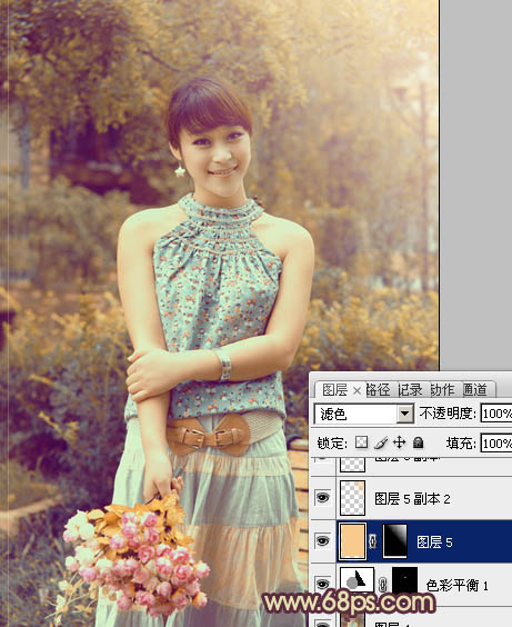 Photoshop给公园美女图片增加柔和的古典橙黄色(7)