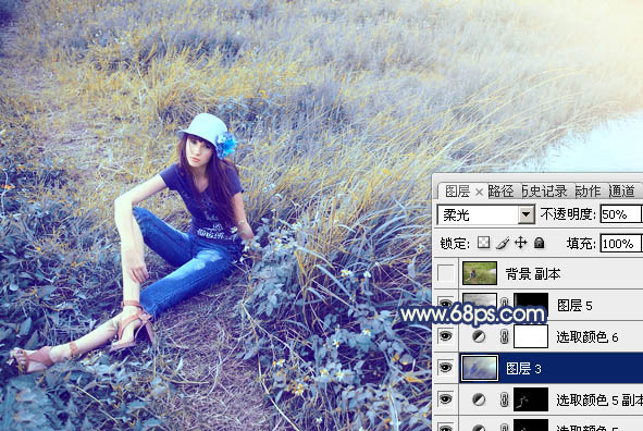 Photoshop给池塘边的人物图片加上梦幻的蓝黄色(10)