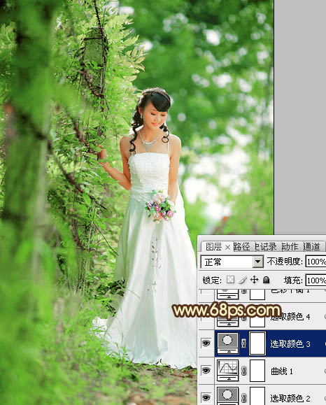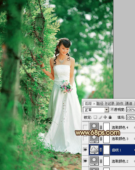 Photoshop给树林美女图片加上甜美的粉绿色(4)
