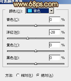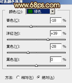 7、创建可选颜色调整图层,对红、黄、绿、青进行调整,参数设置如图21 - 24,效果如图25。这一步增加背景部分的淡青色。