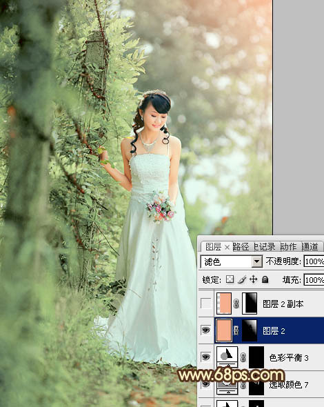Photoshop给树林美女图片加上甜美的粉绿色(8)