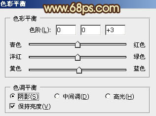 14、创建色彩平衡调整图层,对阴影,高光进行调整,参数设置如图33,34,效果如图35。这一步微调整体颜色。