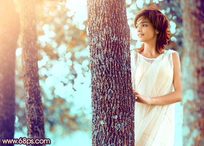 素材图片取景非常不错,不过总体颜色过于单一。可以适当增加高光及暗调部分的颜色来丰富画面。主体颜色可根据自己的喜好选择,最好选灿烂一点的颜色。