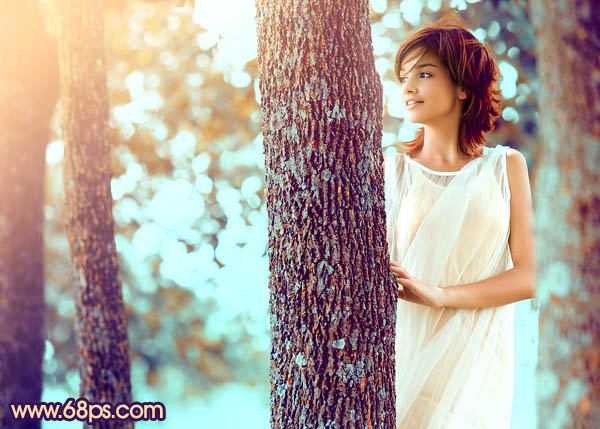 Photoshop给树林人物图片加上灿烂的青黄阳光色(10)